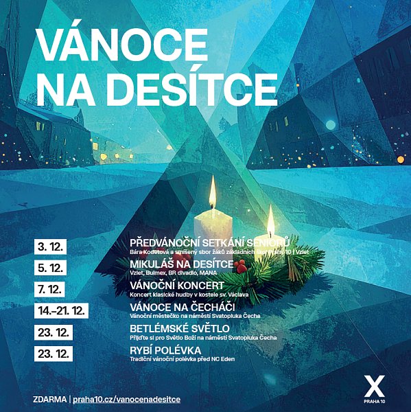 S příchodem vánočních svátků ubývá veřejných akcí, a tak vám přejeme především klidné Vánoce v kruhu blízkých. 23. prosince si můžete přijít pro Betlémské světlo na náměstí Svatopluka Čecha a pro rybí polévku před NC Eden.